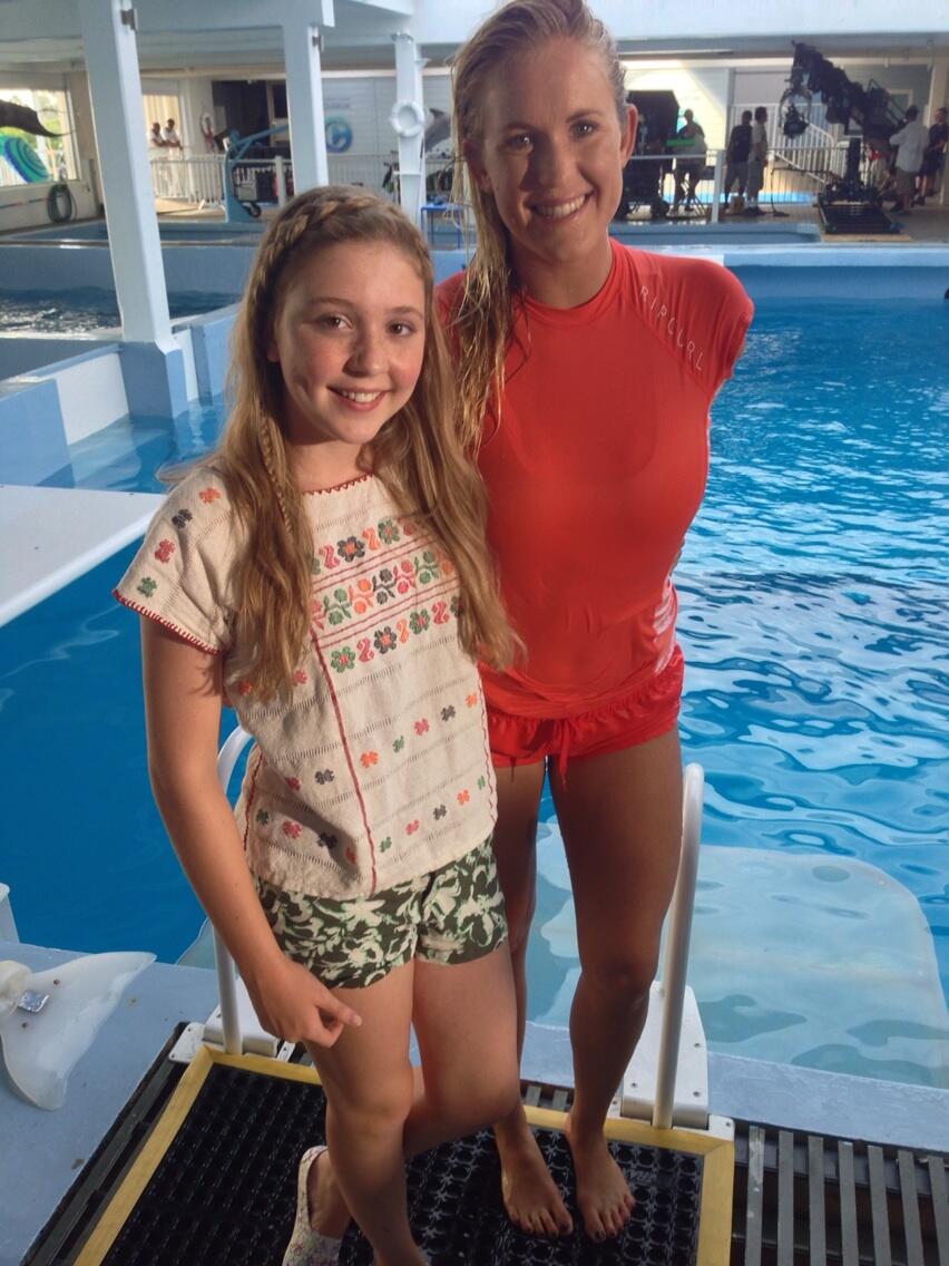 Like I said before, there's no movie updates, but I've found a few photos from Dolphin Tale 2's filming process. Both of them include the legendary, shark-attacked Hawaiian surfer Bethany Hamilton.